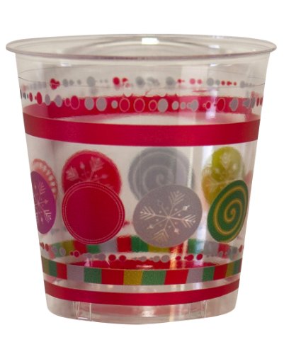 Lote de 10 Vasos transparentes con dibujos de bolas de Navidad. Son de plástico y tienen una capacidad de 30 cl.Son perfectos para completar tu mesa de Navidad.. Vasos. 100% Plástico