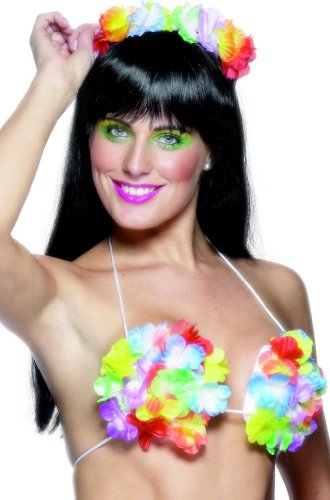 ADULT WOMENS HAWAIIAN FLOWERED BRA HAWAIIAN LUAU SMIFFYS FANCY DRESS COSTUME (disfraz)