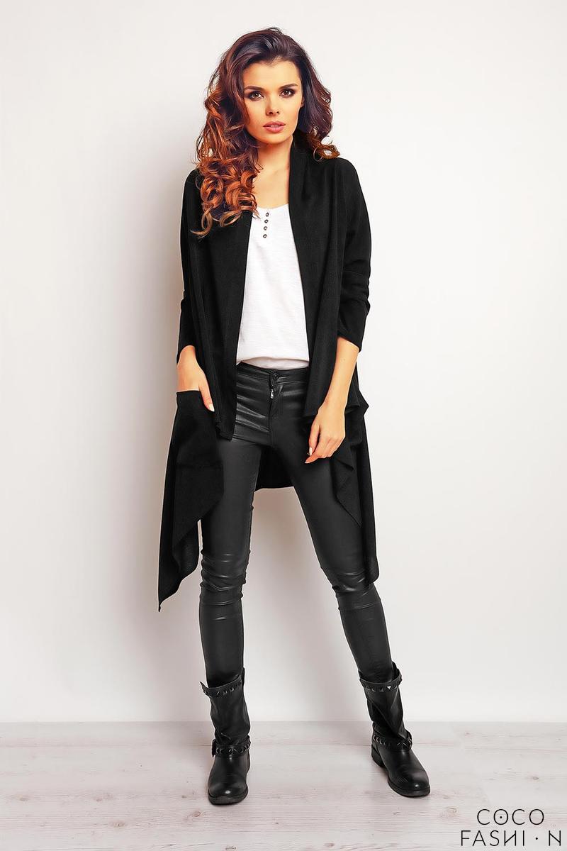 Whimed y que estamos mostrando lo tienen todo en moda con Black Asymetrical Loose Lapels Cardigan al mejor precio. .