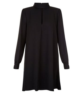 Blue Vanilla Black Funnel Neck Keyhole Shirt Dress