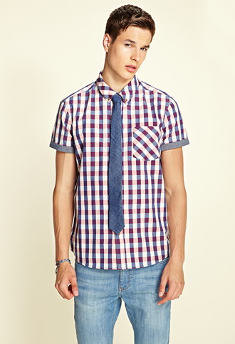 Camisa classic-fit de algodón con estampado de cuadros y manga corta con ribete en chambray. Cuello abotonado, bolsillo sobre el pecho y cierre de botones en la parte delantera. Sin forro100% algodón76cm largo total, 112cm contorno de pecho, 106,5cm contorno de cintura, 20,5cm mangaMedidas de la talla MLavar a máquina con agua tibiaProducto importado