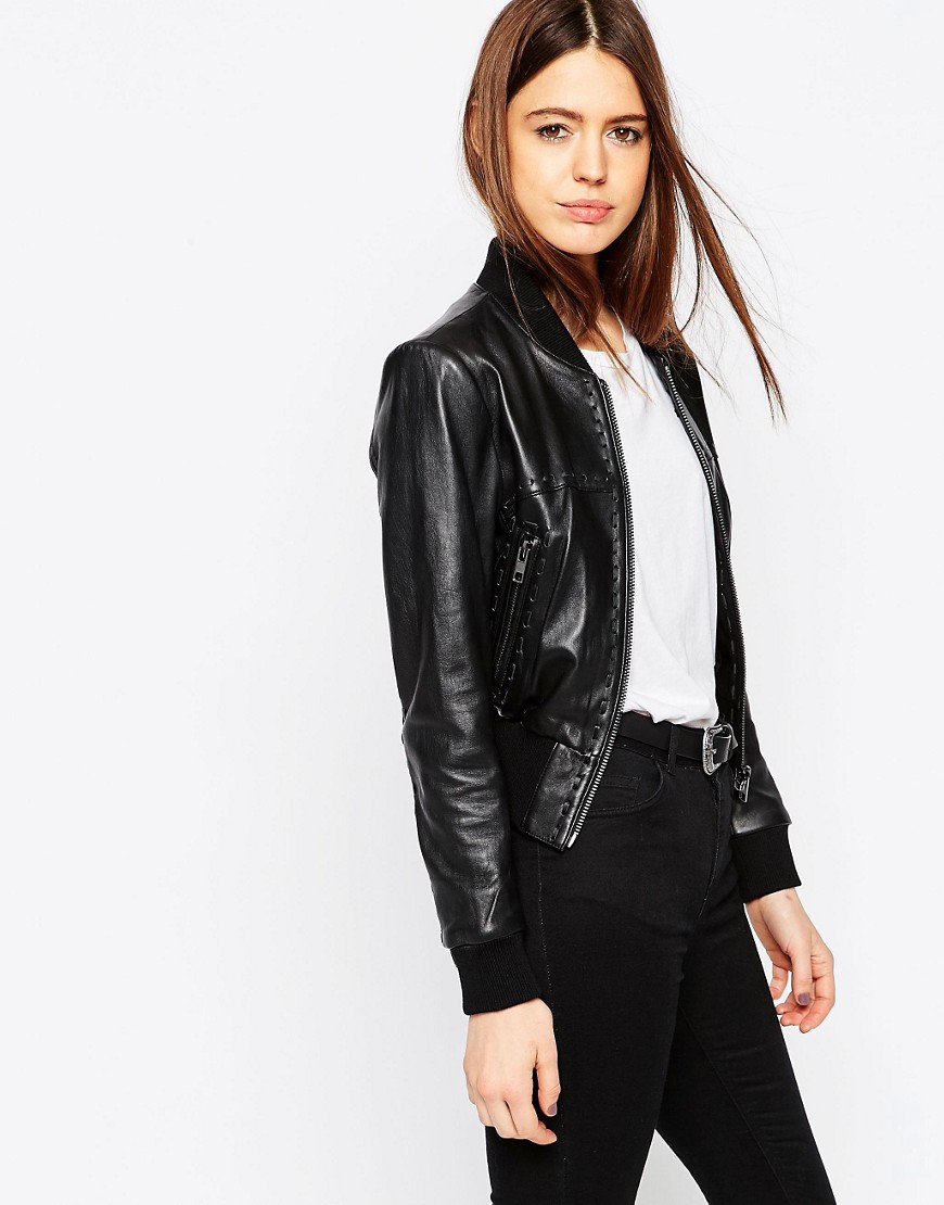 Whimed y ASOS lo tienen todo para la mujer con Cazadora bomber de cuero con detalle de costuras de ASOS al mejor precio.