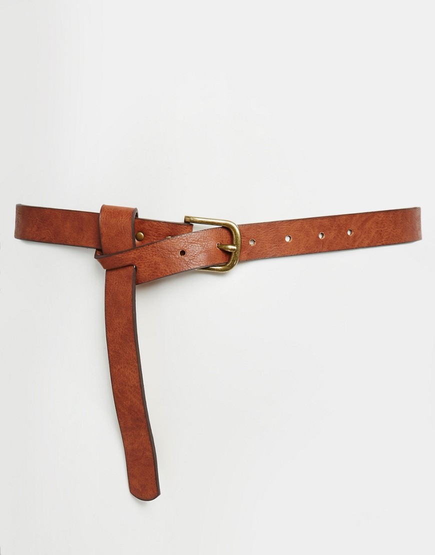 Cinturón largo y muy estrecho en cuero sintético marrón de ASOS