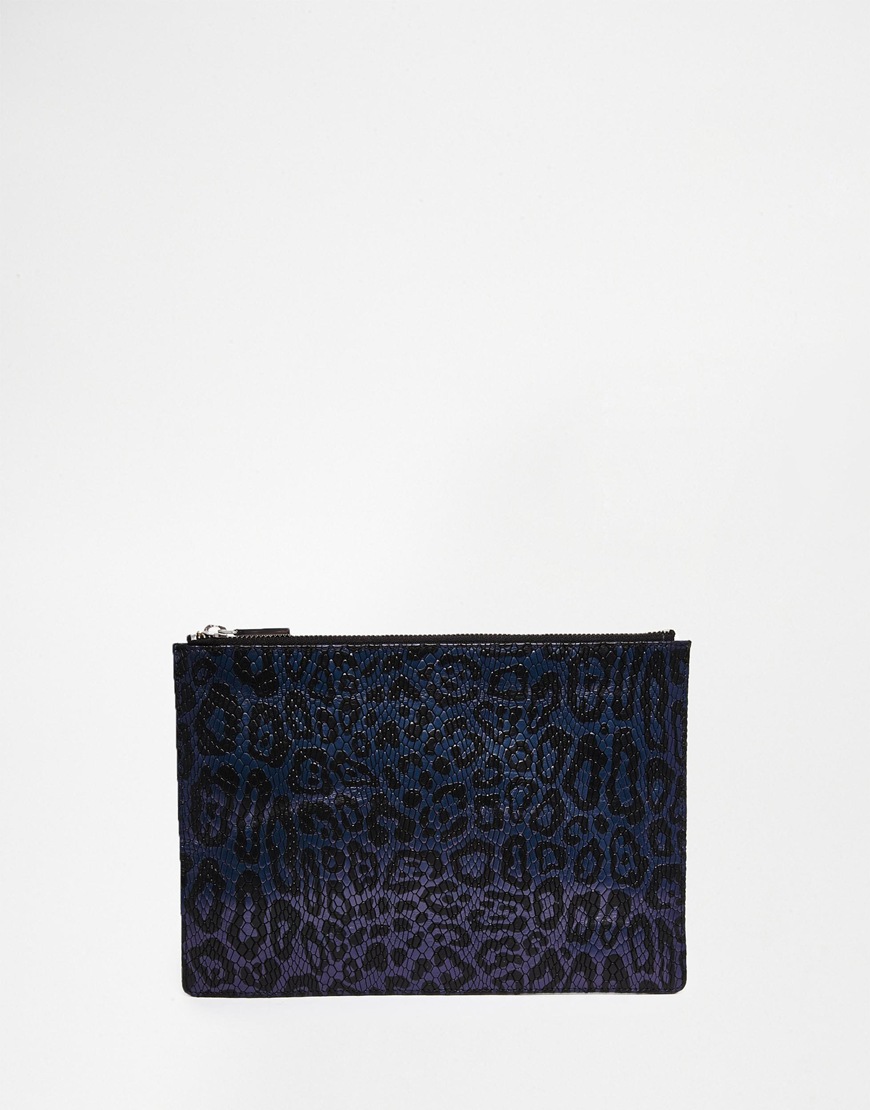 Clutch de cuero azul marino con estampado de leopardo de Whistles