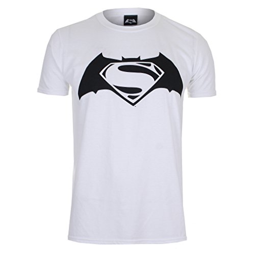 DC COMICS Camiseta Manga Corta Superman V Batman Logo Blanco 2XL
