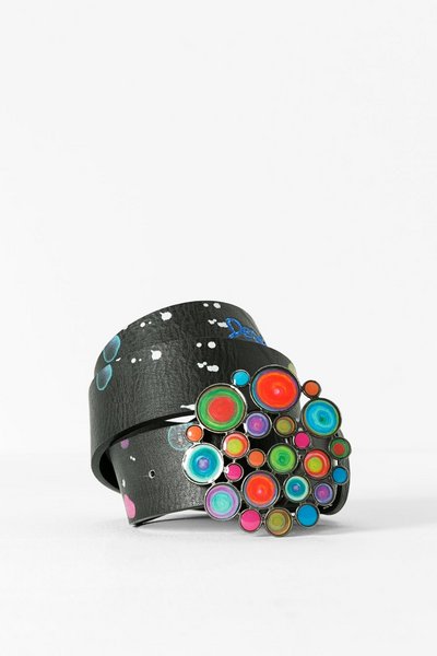 Desigual - Mujer - Cinturón negro con hebilla de colores - Chapon Xl Splatter - Size 85