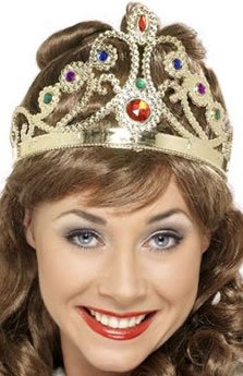 Diadema dorada o plateada de plástico, embellecida con diamantes falsos de colores para mujer. Complemento perfecto de un disfraz de reina o de princesa. Ideal para un carnaval, un espectáculo, una animación o una fiesta temática. Excelente accesorio para fiestas sobre el medievo.