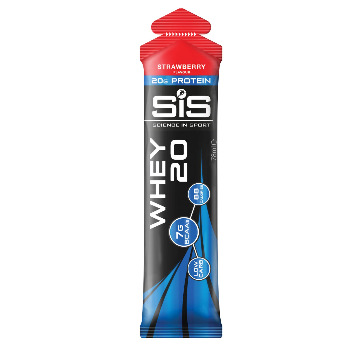 SiS WHEY20 está elaborado a partir de proteínas de suero de leche; el resto de geles de proteínas del mercado contienen colágeno como principal fuente de proteínas, ya sea de piel animal o de pescado. El uso de la proteína de suero de leche como la principal fuente de proteínas hace que sepan mucho mejor en comparación con los productos elaborados con colágeno como principal fuente de proteínas. El perfil de aminoácidos de la proteína de suero de leche también es superior en comparación con el colágeno. Las proteínas de suero de leche contienen por naturaleza más leucina, isoleucina y valina (aminoácidos ramificados), bloques esenciales para el crecimiento y el desarrollo de la masa muscular magra. WHEY20 es además bajo en grasas, carbohidratos y azúcares, con tan solo 88 calorías por ración. Preguntas más frecuentes (FAQ) ¿A qué sabe? SiS WHEY20 es un producto de base láctea, por lo que tiene un sabor refrescante a yogur de fresa o de limón. ¿Entonces tengo que guardarlo en la nevera? No, no es necesario guardarlo en la nevera. WHEY20 está pasteurizado, por lo que se puede almacenar a temperatura ambiente y llevar en una bolsa de deporte sin problemas, para tener a mano cuando te haga falta. ¡Es muy rico! ¿Significa que contiene azúcares o grasas? ¡Por supuesto que no! Cada sobre contiene solamente 1,8 g de carbohidratos: no se trata de azúcares añadidos, sino que provienen de la pequeña cantidad de lactosa conservada de los orígenes lácteos del producto. Además, casi toda la grasa ha sido eliminada, dejando solo un 0,1 g por gel. Sus 20 g de proteína de alta calidad aportan un total de tan solo 88 calorías por sobre. ¿Por qué debería tomármelo? La proteína de suero de leche es una de las proteínas con la tasa de digestión más rápida conocida y, además, incluye un alto contenido en BCAA (aminoácidos ramificados). Los BCAA forman el 35% de la masa muscular magra; por este motivo, son un componente básico que debe incluirse para conservar una composición corporal sana y para favorecer el crecimiento y mantenimiento de la masa muscular magra. SiS WHEY20 ha sido testado dentro del programa de substancias prohibidas de Informed-Sport. ¿Cómo me lo tomo? Simplemente rasga la parte superior ¡y listo para tomar! El producto fluye con facilidad, por lo que saldrá del sobre sin esfuerzo alguno. No se requiere tomar con agua, pero si lo tomas después de entrenar, es importante que también bebas agua para mantenerte hidratado. ¿Cuándo debería tomarlo? SiS WHEY20 es realmente práctico y puedes incorporarlo en tu dieta para obtener una ración de proteínas de calidad siempre que las necesites. Si has estado entrenando, tómatelo en los 30 minutos tras finalizar la sesión para maximizar los beneficios de tu aumento metabólico después del ejercicio físico. ¿Es apto para todo el mundo? Todos los productos de proteína de suero de leche provienen de la leche, de manera que, desafortunadamente si eres intolerante a la lactosa, este producto no será apto para ti. No obstante, es un producto libre de trigo y gluten y es apto para vegetarianos. ¿Cuántos puedo tomarme al día? El fin de este producto es el de ofrecerte una forma sencilla para que consigas el consumo de proteínas de alta calidad que necesitas, por lo que aunque podrías tomar varios al día, en realidad no deberías sustituir la comida por este producto. Tomar entre uno y dos al día como suplemento alimenticio y como ayuda para tus entrenamientos está bien. ¿Qué es el quark? El quark es un producto lácteo elaborado a partir de leche agria que se calienta hasta que se cuaja. Este tipo de queso ayuda a darle una textura similar al yogur a los geles.