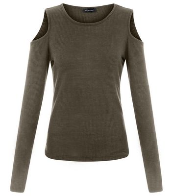 Khaki Ribbed Cold Shoulder Long Sleeve Top