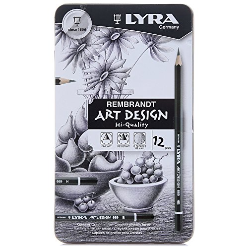 Lyra Rembrandt Art Design - Estuche metálico 12 lápices hexagonales de grafito artístico, con durezas desde 4H a 6B