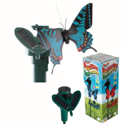 Te presentamos este original dispositivo, para decorar tu jardin o macetas. La Mariposa Rotativa Solar para exterior. Ahora podrá ser primavera todo el año, con la mariposa solar. "Plantalo" entre tus plantas y con solo unos rayos de sol, la mariposa comenzará a girar alrededor de las flores. Sorprende a tus amigos, con este elemento decorativo. Características: Funciona con energía solar o pila AAA Altura 53 cm Medida Mariposa 9 cm
