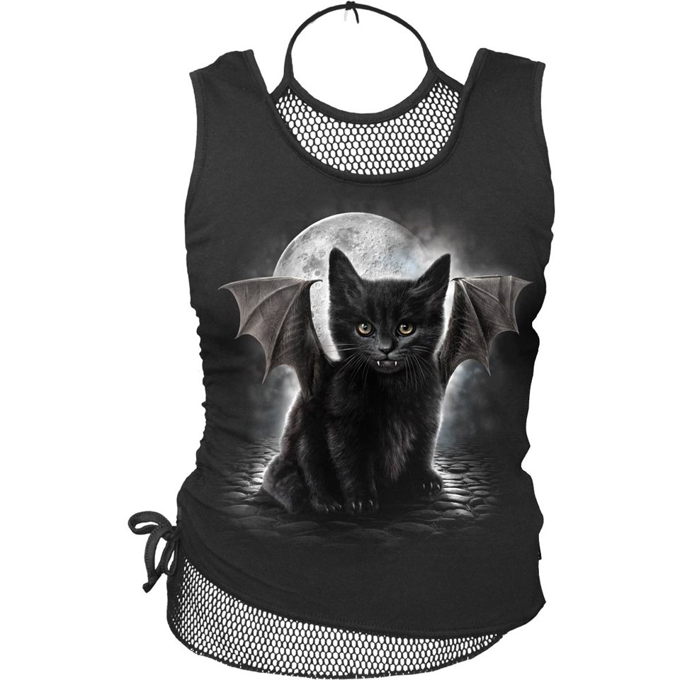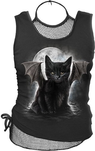Spiral Women's BAT CAT 2 in 1 Neck Tie Mesh Top - Black - M