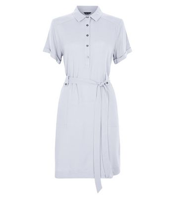 Pale Blue Tie Waist Roll Sleeve Shirt Dress