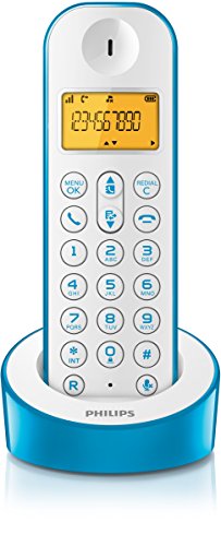 Philips D1201 - Teléfono inalámbrico (DECT, 50m, 300m), azul y blanco