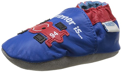 Robeez Racing - Patucos de cuero para niño, color azul, talla 21/22