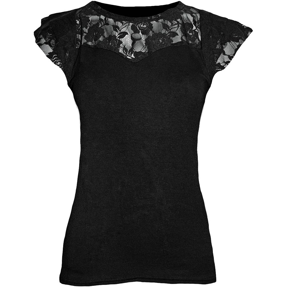 Spiral Women's GOTHIC ELEGANCE Lace Layered Cap Sleeve Top - Black - M