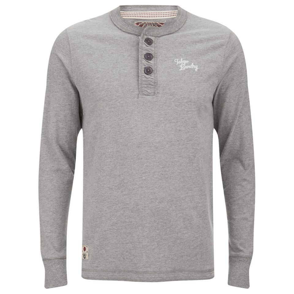 Tokyo Laundry Men's Channing Button Long Sleeve Top - Mid Grey Marl - S