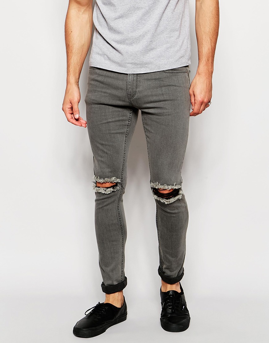 Vaqueros de corte pitillo con detalle de rotos en gris desgastado de Only & Sons