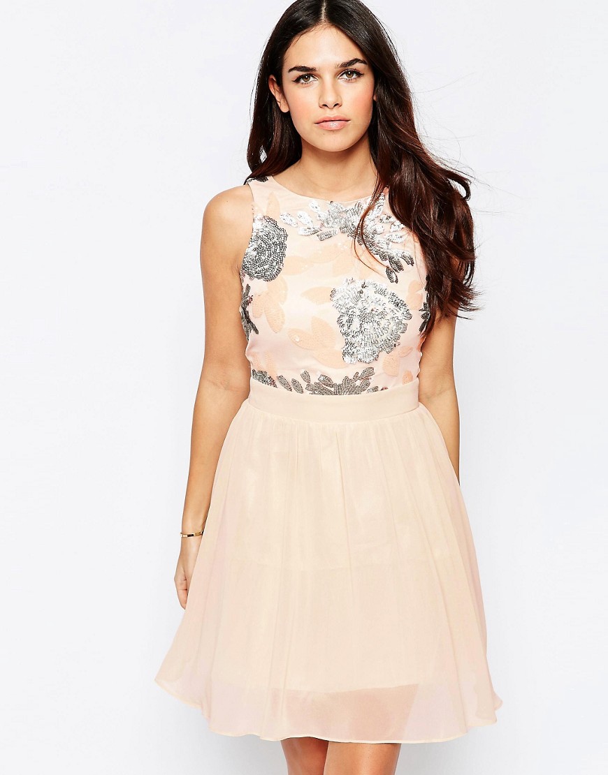 Vestido entallado y con vuelo con parte superior de lentejuelas de Little Mistress